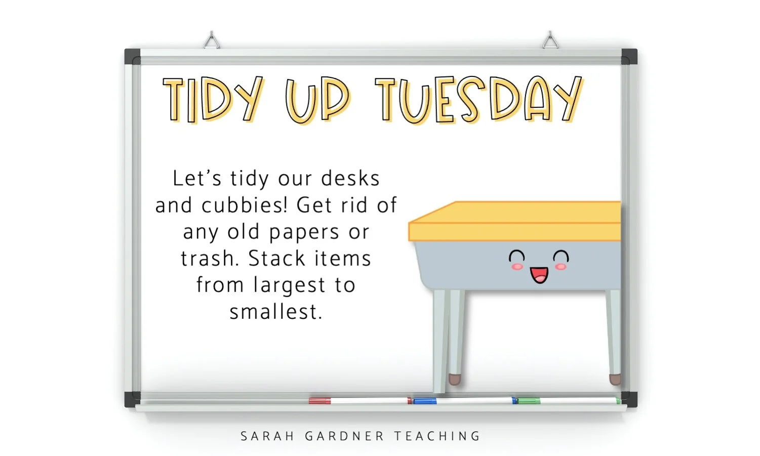 Here’s my biggest tip for Tidy Up Tuesday - once you have students familiar with the tasks and expectations, take this time to tidy YOUR space too. You’ll be modeling exactly what you want your students to be doing while clearing the clutter from your own space. Believe me, you’ll thank yourself later.