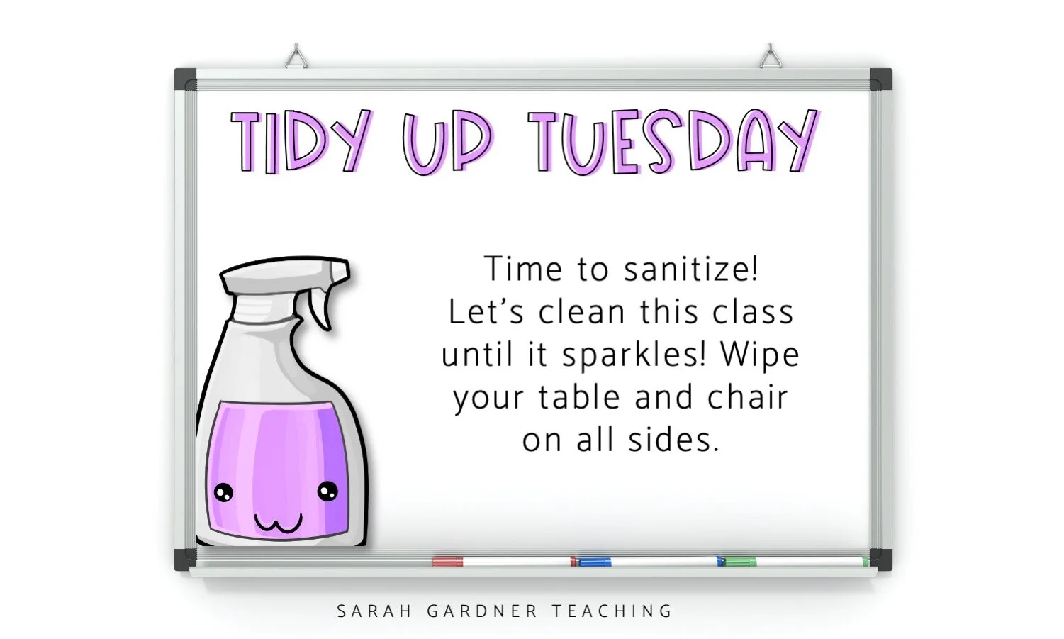 This last one is probably done daily in the COVID classroom, but in the before-times, we spent one Tuesday per month really sanitizing our space. If your students are not able to use Clorox wipes or other disinfectants, have them wipe things down with baby wipes (it’s better than nothing!) and then you can hit everything with a good Lysol spray once they leave for the day.