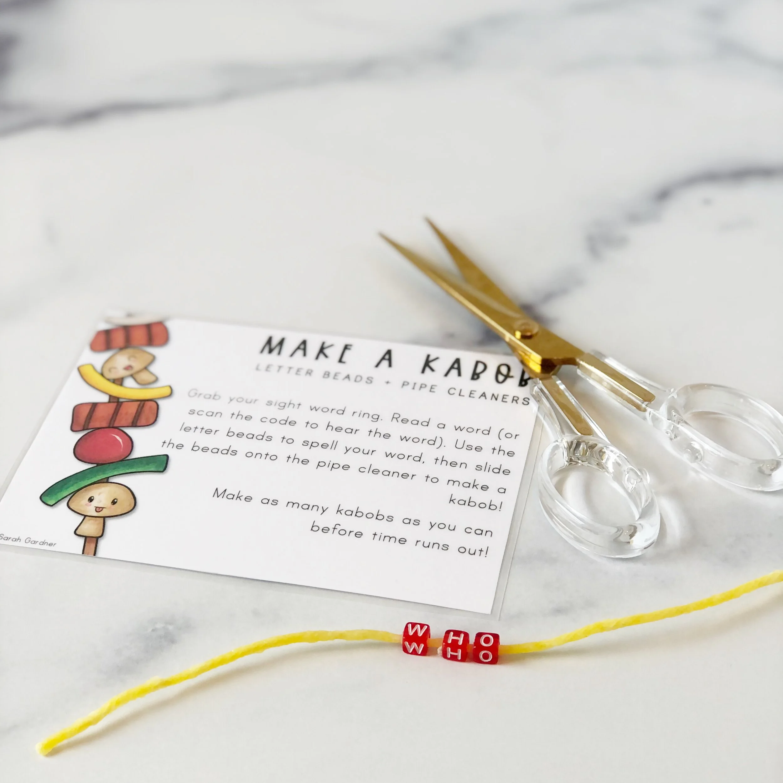 This last idea is my personal favorite. Students will make their own “kabobs” with letter beads and pipe cleaners or Wiki Sticks. This center is an excellent way to incorporate fine motor work into sight word practice - something that many of our younger students will benefit from.