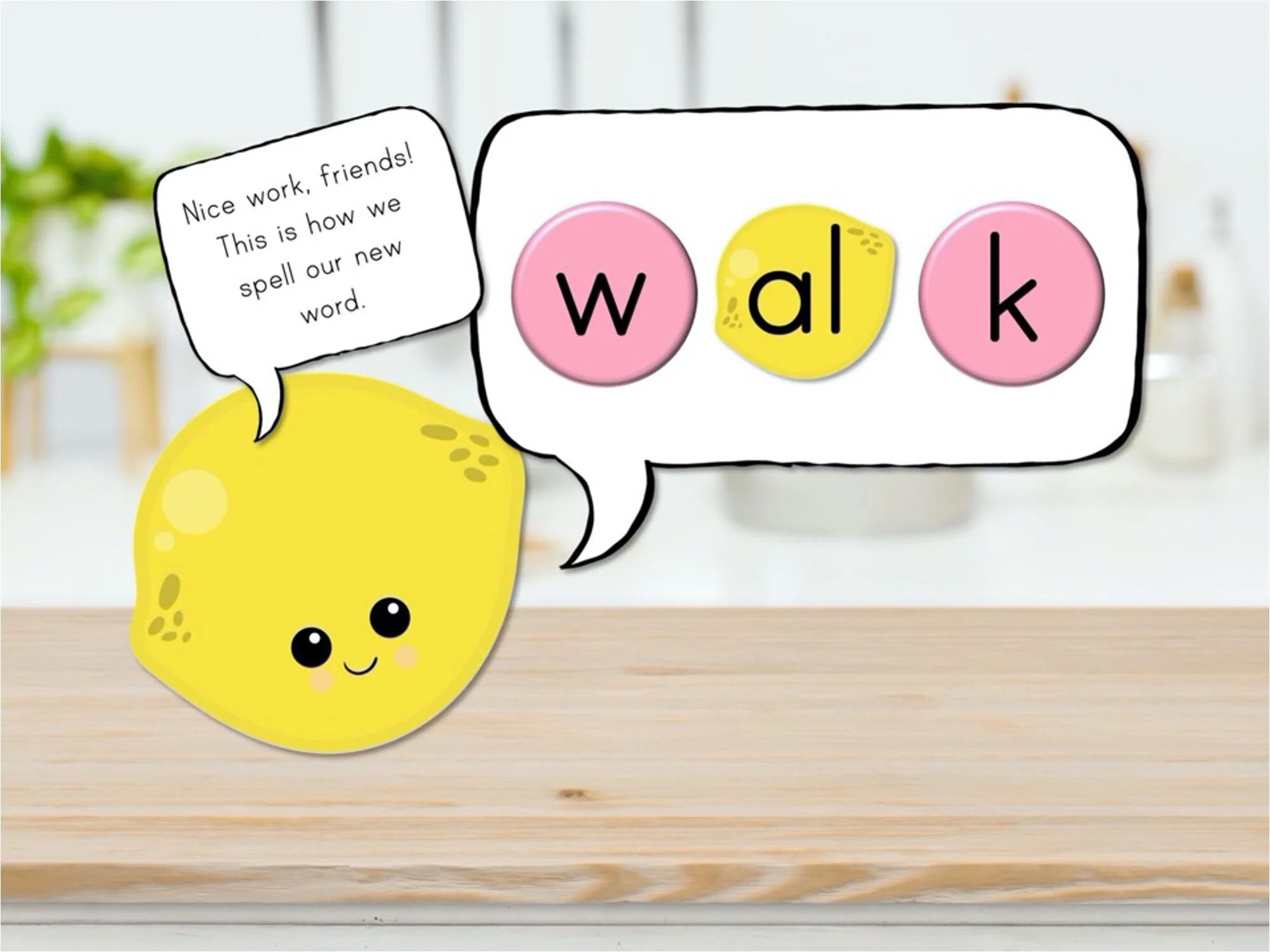 A sour word contains one or more sounds that isn’t phonetic or follows a rule that students haven’t been taught yet. The word “said” is a sour word. The “ai” in the word “said” is the sour sound. Just because the word “said” isn’t completely phonetic doesn’t mean we should through phonics out the window! The “s” and “d” in the word “said” DO follow typical phonics rules, and it’s important that our students know that. Our job with sour words is to call attention to the irregular sounds that we need to map. Let’s jump into how you can use the sweet and sour words method in your classroom. For this example, we’ll walk through a lesson on a sour word, “walk”