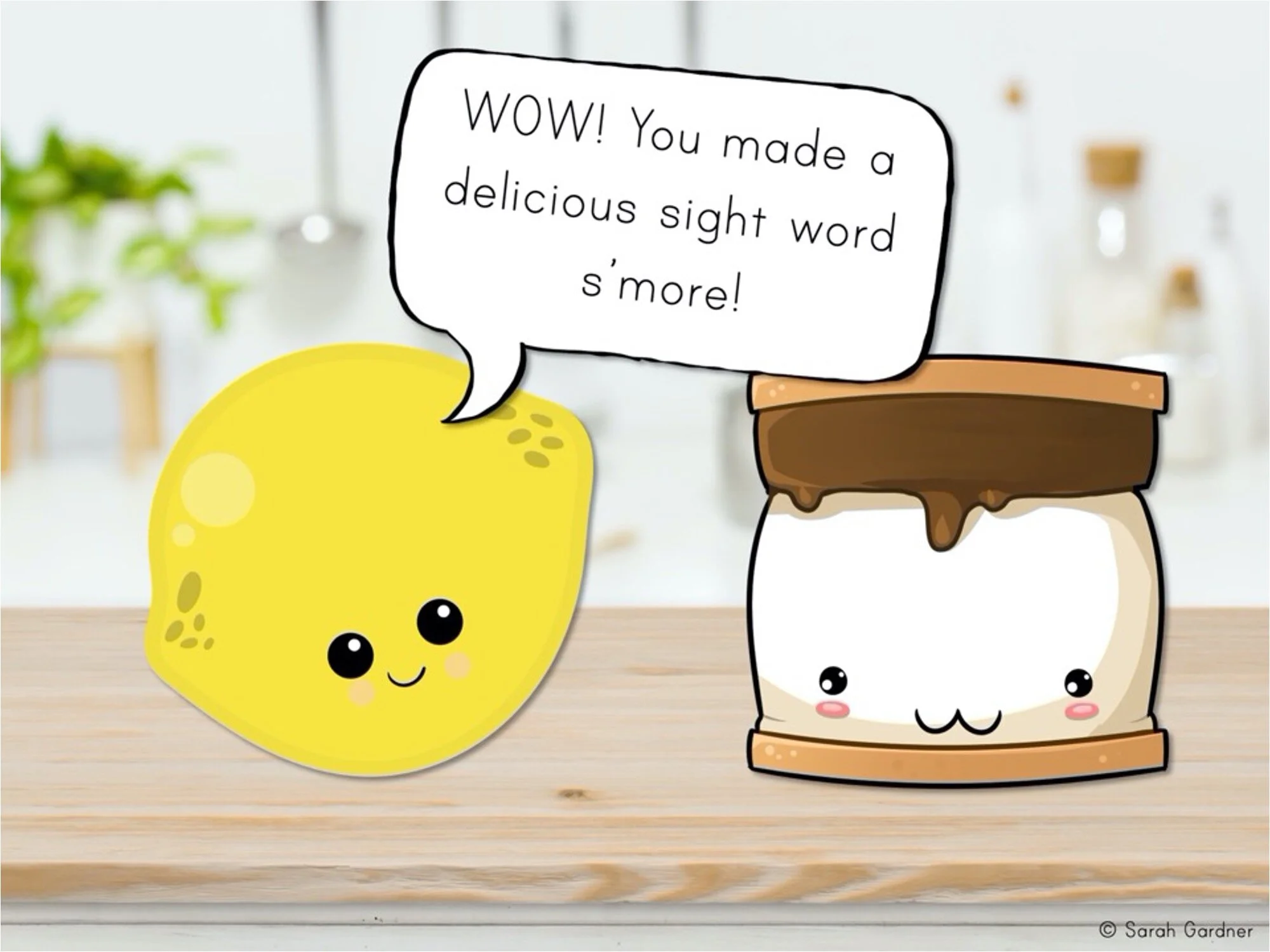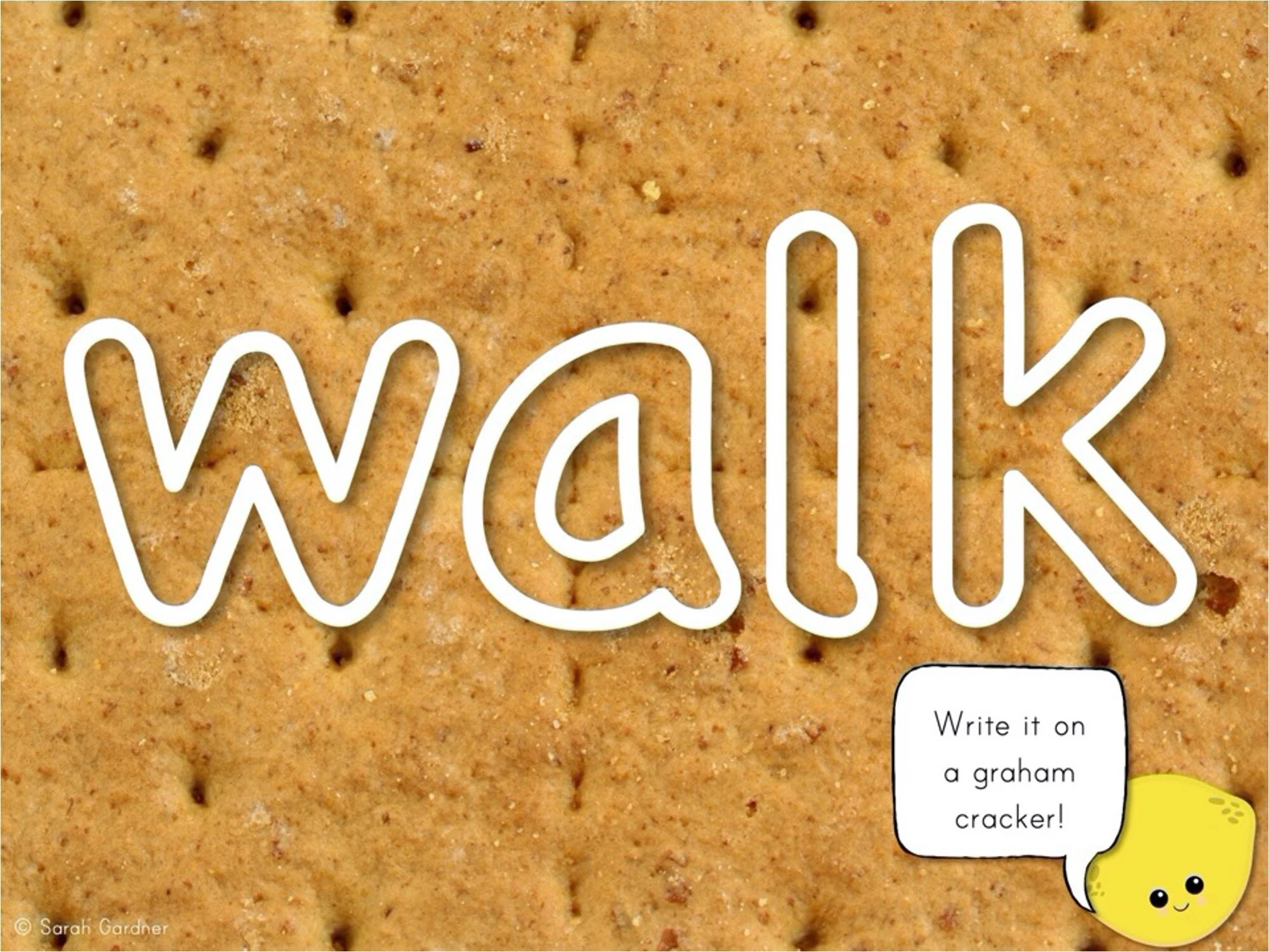 During this routine, we practice writing our new word in the air or on our desks with our finger. As we “write” the word, we build a little treat (in this lesson, we’re making a s’more!).