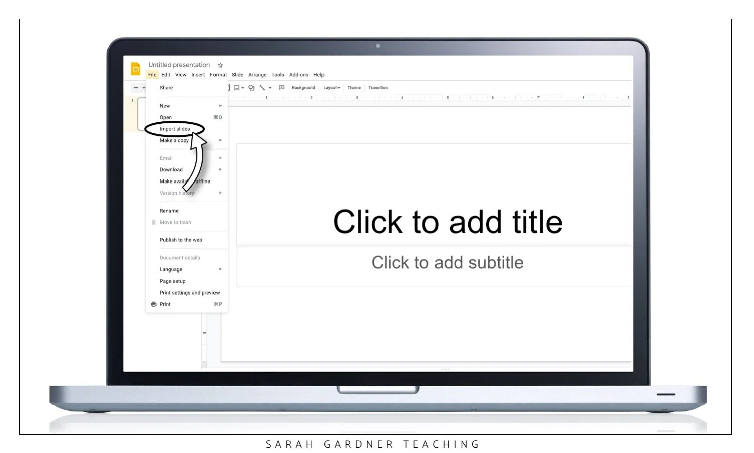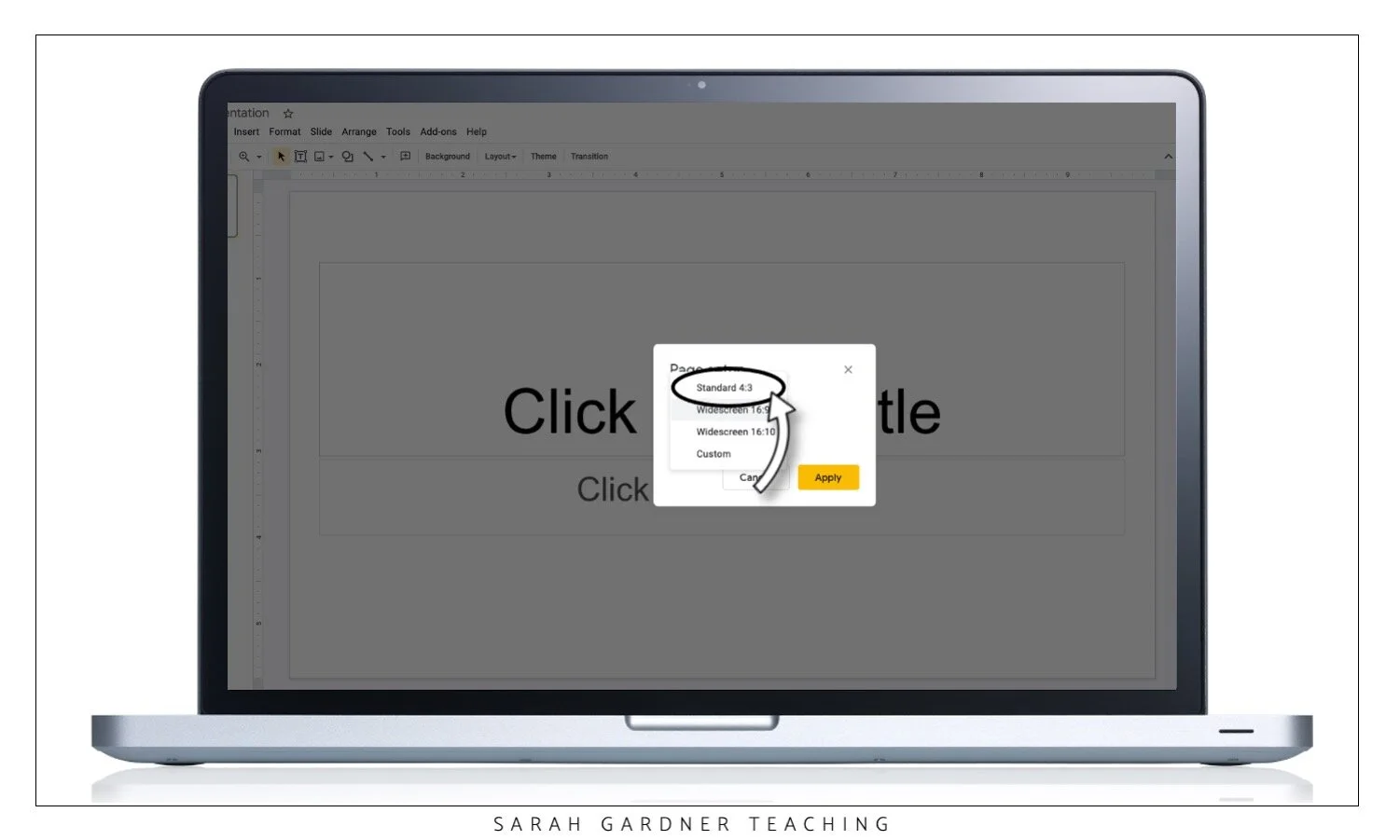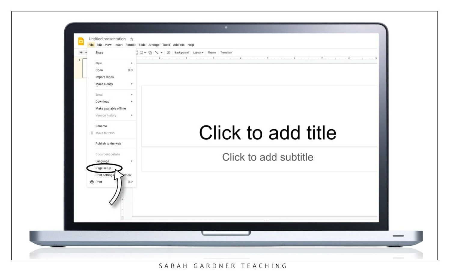 Google Slides defaults to a widescreen (16:9) view, while most Powerpoint presentations that you purchase from TPT will be in the Standard (4:3) format. Thankfully, this is an easy fix. Here are the steps to resize the slides: